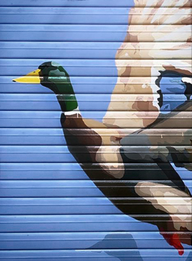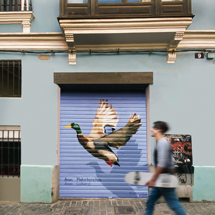 Intervenció mural al Carrer Palomar que dialoga amb el paisatge urbà i la memòria col·lectiva del barri. La pintura incorpora referents del context local, activant la relació entre identitat, natura i comunitat. Un mural que posa en valor el lloc com a espai de convivència i record, integrant-se de manera orgànica al seu entorn.