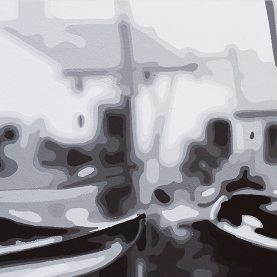 Ha sigut el punt de partida de la composició, es tracta d'una imatge monocromàtica i de baixa resolució, però lluny de condicionar negativament el conjunt, ha sigut el pretext per a generar un paisatge boirós, amb cert efecte òptic que aporta un caràcter lleugerament oníric al mural, sense entrar en conflicte amb el propi paisatge del port.