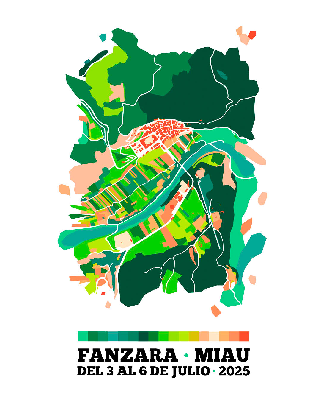 La imatge del 9é Festival MIAU Fanzara 2025 naix com una cartografia expandida del poble i el seu terme municipal. Una vista aèria, vertical i oberta que situa al centre el valor de la terra i de l’entorn com a motor de transformació social i cultural.